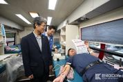 [ 한국미디어뉴스 이보영 기자 ] 울산광역시교육청이 1일 울산교육청 지방공무원 4개 노동조합과 함께 교육청 야외주차장에서 노사가 함께하는 헌혈 봉사활동을 했다. ‘여럿이 함께 동행 사업’의 하나로 울산혈액원의 이동 헌혈 버스를 활용해 진행한 이번 행사는 최근 울산지역 저출생과 고령화 영향으로 혈액 수급에 어려움을 겪고 있는 지역사회에 따뜻한 나눔을 실천하고자 마련됐다. 이번 헌혈에는 천창수 교육감을 비롯해 노동조합 간부와 조합원, 교육청 직원 등 30여 명이 자발적으로 참여했다. 노사 공동 헌혈은 교육청 구성원이 함께 사회적 문제 해결에 동참한 뜻깊은 사례로 의미를 더했다. 울산교육청은 헌혈 봉사 외에도 봄가을 환경정화 활동, 겨울철 김장 담그기 등 계절마다 정기적인 사회봉사 활동을 꾸준히 실천하며 지역사회와의 상생을 이어가고 있다. 천창수 교육감은 “생명 나눔에 함께해 주신 모든 분께 감사드린다”라며 “앞으로도 교육청은 노사와 함께 조화롭고 상생하는 공동체 문화를 만들겠다”라고 말했다.